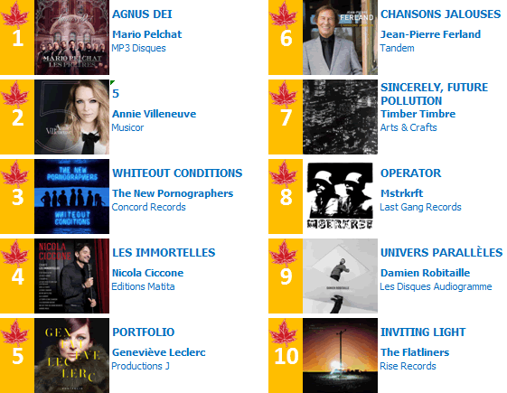 “The CIMA 20 chart is the top 20 Canadian independent artists’ album packages which includes sales, downloads and streams within the Canadian market.”