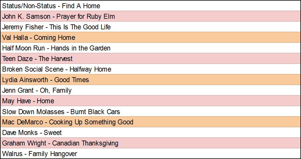 Wild Raccoon marks the passing of Thanks Giving on Monday by playing music that reminds him of the day.